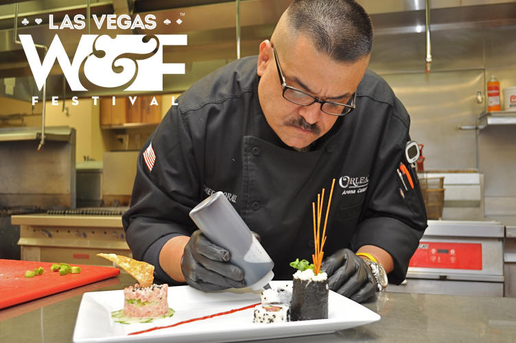 From every level of the culinary world, the Orleans Arena’s catering chef, Gilbert Morales has used his 34 years of experience and his full service kitchen to put together a unique cuisine presentation for all wine and food festival attendees.